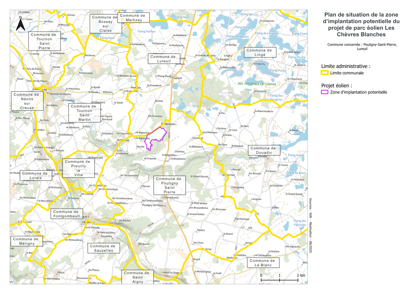 Dès janvier 2024, après une étude de préfaisabilité, SEIDER est allée à la rencontre des élus de Pouligny-Saint-Pierre, puis ceux de Lureuil, commune voisine du projet. Après plusieurs mois d'échanges avec de nombreux propriétaires et les exploitants agricoles dans la zone, les études environnementales ont été lancées en septembre 2024, notamment avec la pose d'un mât de mesure.