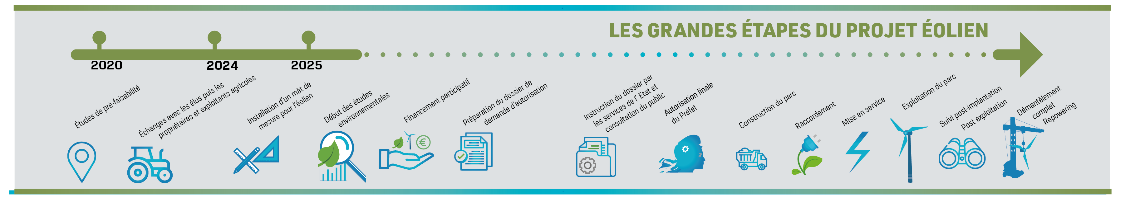 Depuis le printemps 2025, des études environnementales ont été engagées afin de définir les caractéristiques techniques du projet et d’en garantir une intégration harmonieuse dans son environnement. Ces études permettront notamment de déterminer le nombre d’éoliennes, leurs dimensions et leur implantation précise. Elles s’étaleront sur plusieurs années et feront l’objet d’une analyse approfondie par les services de l’État lors de l’examen du dossier de demande d’autorisation environnementale.